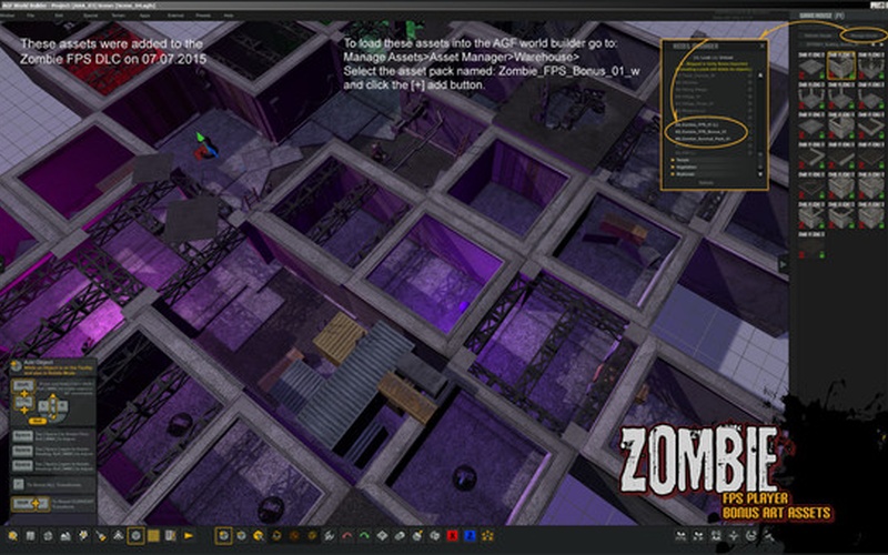 Zombie FPS Player is a new DLC for Axis Game Factory’s AGFPRO and PREMIUM that allows users the ability to create their own 3D Zombie Shooter games from a first-person shooter perspective.