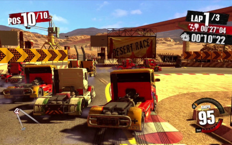 Drive fully destructible trucks in Championship, Time Attack, Elimination and Quick Race. Get rid of opponents trying to block your way and make a reputation for yourself! Customize your vehicle from the engine to the paint, choose among 48 tracks and face your friends in Online or Local multiplayer for maximum destruction!